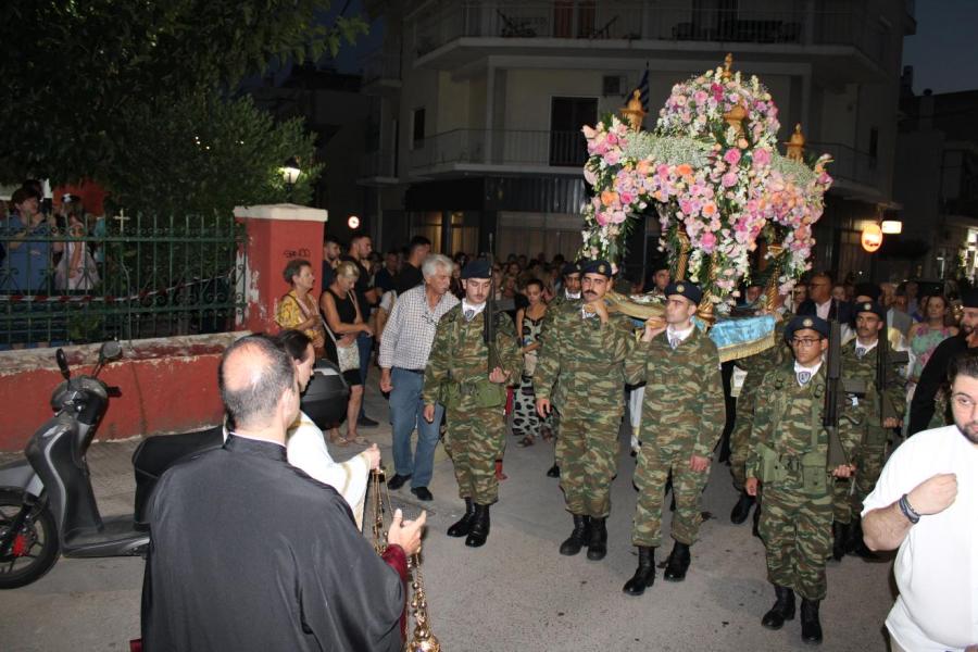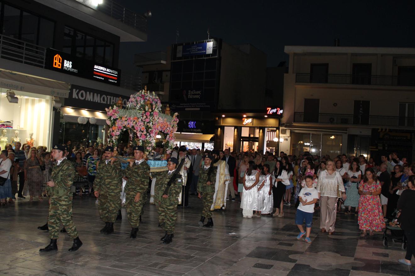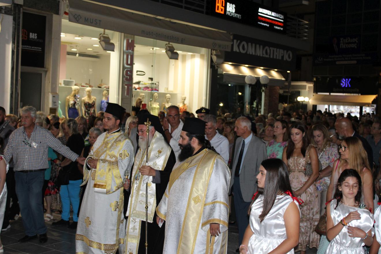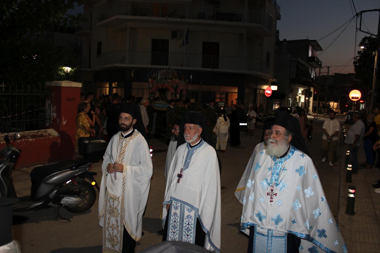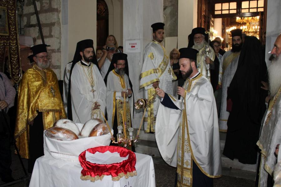 Επηκολούθησε λιτανευτική πομπή του Επιταφίου της Παναγίας και μετά την επιστροφή στον Ιερό Ναό ετελέσθη η ακολουθία της ευλογίας των άρτων. Ακολούθως ο Σεβασμιώτατος διένειμε αρτίδια στο πολυπληθές εκκλησίασμα.