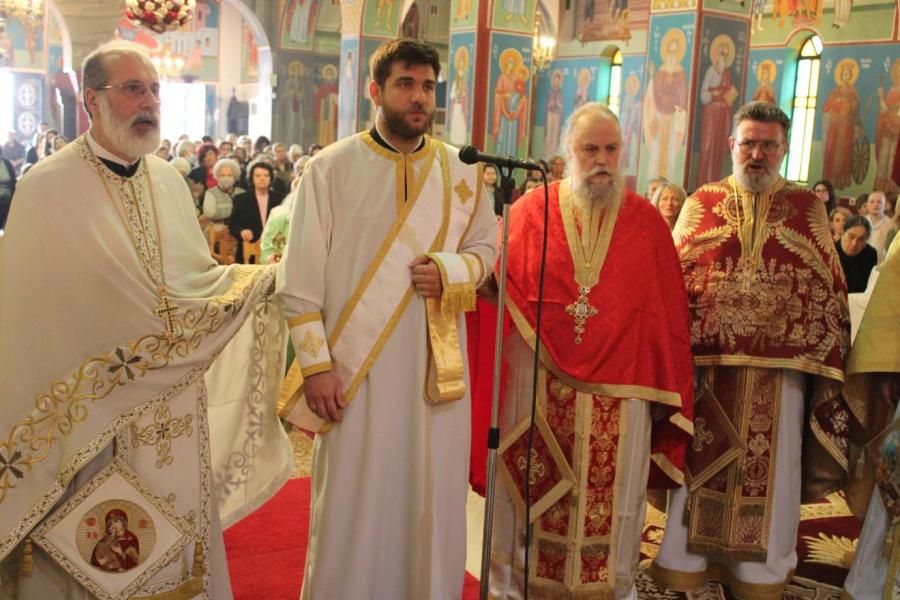 Μετά τη Μεγάλη Είσοδο προέβη στη χειροτονία σε πρεσβύτερο του διακόνου του π. Κωνσταντίνου Κοντογιάννη. Με αφορμή το απόσπασμα από το Ευαγγέλιο του Αποστόλου Ιωάννη, που αναφέρεται στη πρόκληση του Φιλίππου προς τον φίλο του Ναθαναήλ να συναντήση τον διδάσκαλο Χριστό και να ενταχθεί στην ομάδα των μαθητών Του, απηύθυνε κατάλληλη προσλαλιά προς τον χειροτονούμενο, τονίζοντας μεταξύ άλλων την φράση Χριστού «οὐχ ὑμεῖς με ἐξελέξασθε με, ἀλλ’ ἐγώ ἐξελεξάμην ὑμᾶς», όπου φανερώνεται η συνεργία σε κάθε χειρονονία κληρικού, αφ’ ενός μεν του Χριστού, που καλεί και αφ’ ετέρου του υποψηφίου, που αποδέχεται την κλήση.