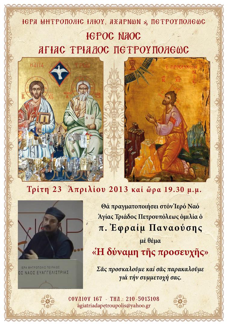 Αγ.Τριάδα Πετρουπ.: Ομιλία «Η δύναμη της προσευχής»