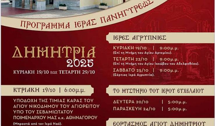 Πανηγυρίζει το Ιερό Παρεκκλήσιο των Εισοδίων της Θεοτόκου Πετρούπολης-Κηπούπολης στις 20 και 21 Νοεμβρίου 2025, σύμφωνα με το ακόλουθο πρόγραμμα: