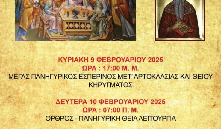 Την Δευτέρα 10 Νοεμβρίου 2025, Εορτή του Αγίου Αρσενίου του Καππαδόκη, πανηγυρίζει το Ιερό Παρεκκλήσιο των Αγίων Παϊσίου και Αρσενίου, που βρίσκεται στον κήπο του Ιερού Ναού Αγίου Γεωργίου Ζωφριάς, σύμφωνα με το συνημμένο Πρόγραμμα.