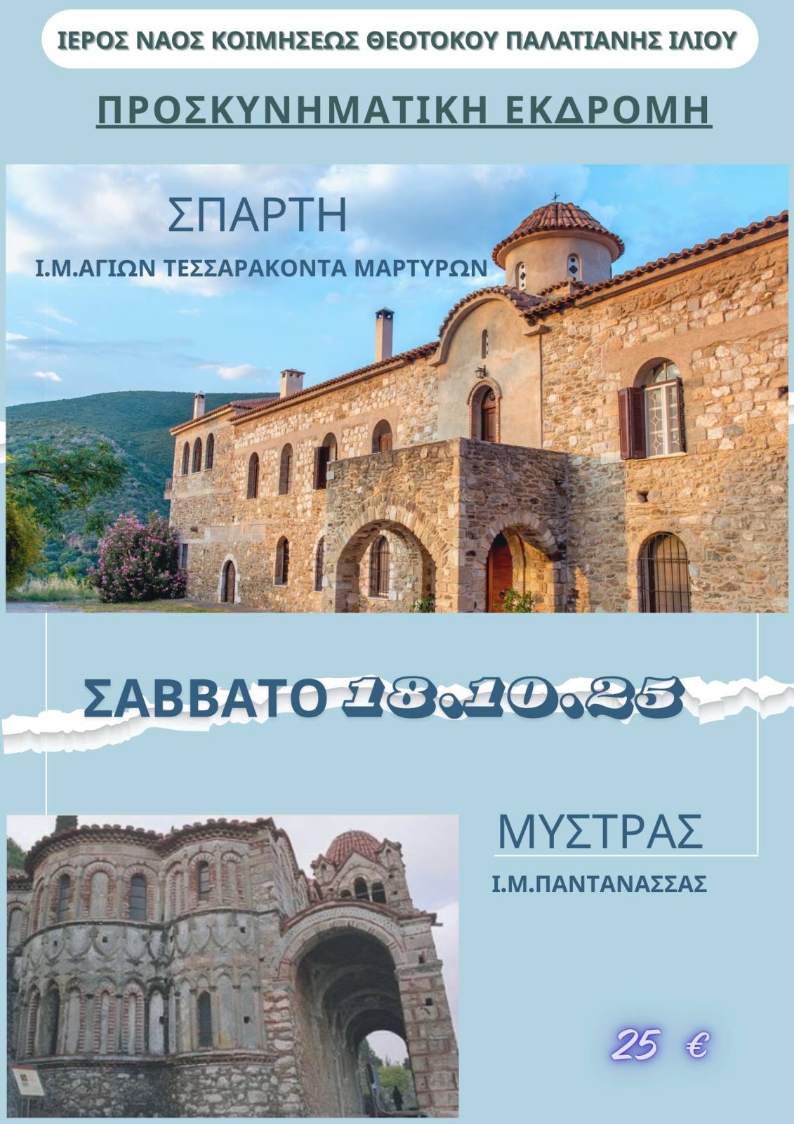 Ι.Μ. Αγίων Τεσσαράκοντα μαρτύρων και στην Ι.Μ.Παντανάσσης στον Μυστρά, το Σάββατο 18 Οκτωβρίου 2025.