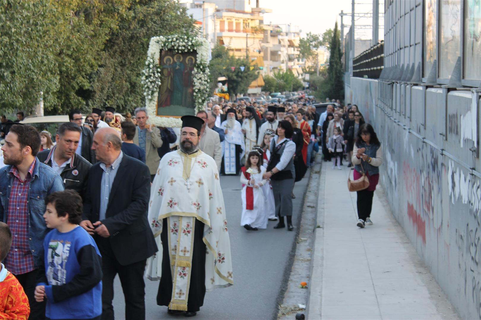 Την παραμονή (25/4/2015) τελέσθηκε πανηγυρικός εσπερινός χοροσταντούντος του Θεοφιλεστάτου Επισκόπου Επιδαύρου κ. Καλλινίκου, ο οποίος εκήρυξε εμπνευσμένα τον Θείο Λόγο. Συγχοροστάτησε ο Σεβασμιώτατος Μητροπολίτης Ιλίου, Αχαρνών και Πετρουπόλεως κ. Αθηναγόρας και παρέστησαν πολλοί Ιερείς της Ιεράς Μητροπόλεως Ιλίου.
