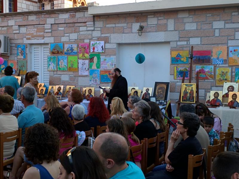 Στο χώρο της εκδήλωσης οι μαθητές της Αγιογραφίας μαζί με τη δασκάλα τους κα. Χρυσάνθη Τσίντζουρα παρουσίασαν τα έργα τους, μαζί με τα παιδιά που διδάχθηκαν ζωγραφική από τη δασκάλα τους κα. Ελένη Παναγιωτοπούλου. Ταυτόχρονα, οι κυρίες των μαθημάτων χειροτεχνίας παρουσίασαν τα εργόχειρά τους, μαζί με την πρεσβυτέρα Δέσποινα Παναγακοπούλου που διέθεσε τον χρόνο της και το ταλέντο της για να δείξει έξυπνους τρόπους διακόσμησης. Έργο του διέθεσε προς έκθεση και ο ξυλογλύπτης κος. Δημήτριος Ψωμοδότης, θέλοντας να κεντρίσει το ενδιαφέρον για μία πιθανή διδασκαλία ξυλογλυπτικής από τον επόμενο Σεπτέμβριο.