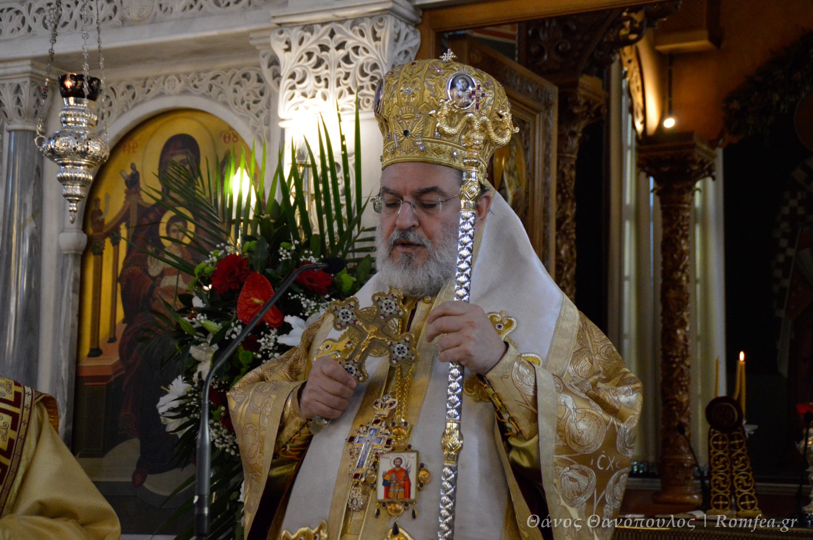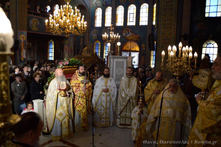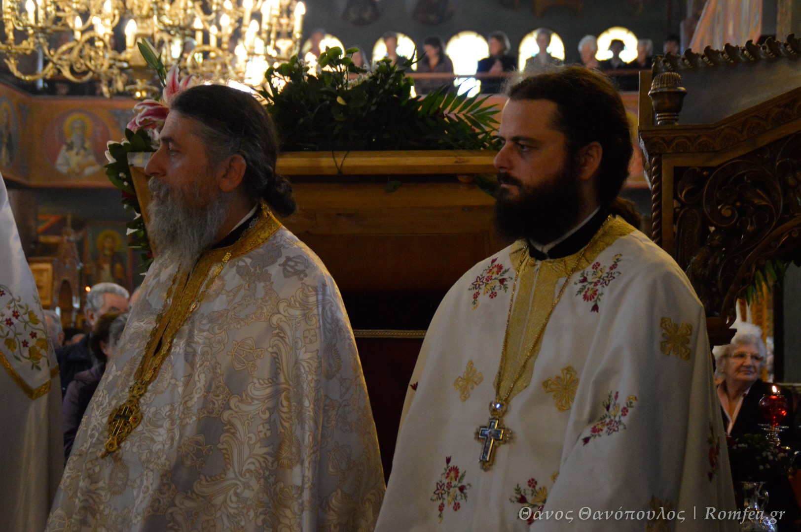 Την Θεία Λειτουργία τέλεσε ο Σεβασμιώτατος Μητροπολίτης Ηλιουπόλεως Αιγύπτου κ. Θεόδωρος, ο οποίος κήρυξε τον Θείο Λόγο, παίρνοντας αφορμή από το χαρακτηρισμό της Αγίας ως «στρουθίον».