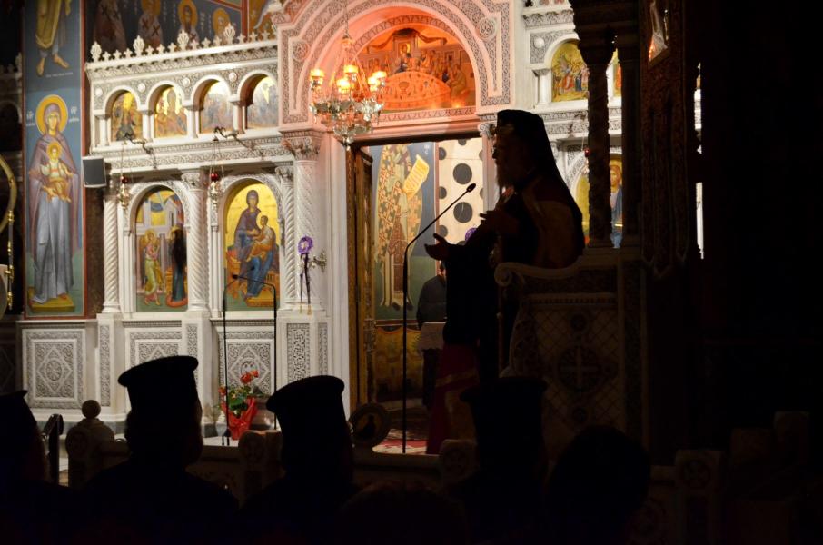 Ο Εσπερινός της Συγγνώμης, που αποτελεί μία από της κατανυκτικότερες ακολουθίες της περιόδου, κοσμήθηκε από την θεολογική ομιλία του Σεβασμιωτάτου, ο οποίος κατηύθυνε τη σκέψη όλων των ακροατών προς το λυκαυγές της Αναστάσεως αλλά και της Βασιλείας των Ουρανών.