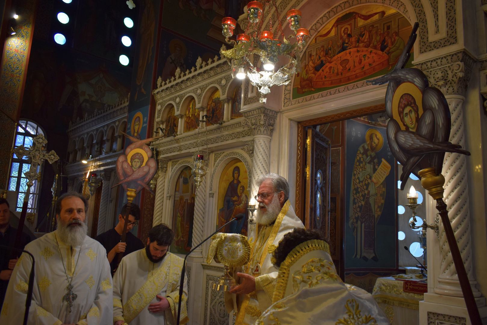 Κατά τη διάρκεια της Θείας Λειτουργίας κήρυξε τον Θείο Λόγο, αναφερόμενος στην κλήση των μαθητών του Χριστού, η οποία ανάγεται στη δημιουργία του κόσμου. Όπως τότε ο Θεός είπε «ποιήσωμεν άνθρωπον», έτσι και τώρα, ο Χριστός ποιεί αλιείς ανθρώπων, για να ετοιμάσει τη «νέα δημιουργία», την Εκκλησία.