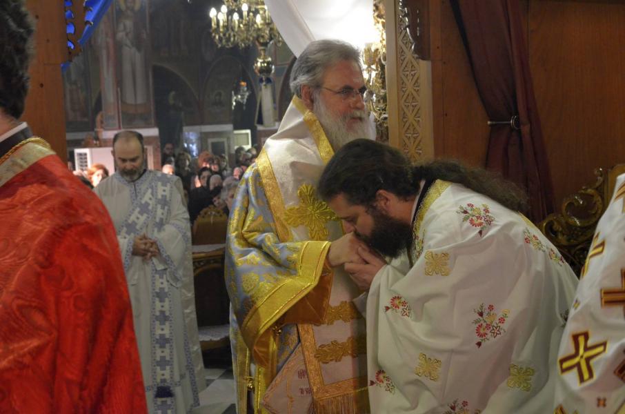 Λίγο πριν την απόλυση ο κ. Αθηναγόρας απένειμε στον εφημέριο του ναού π. Γεώργιο το οφφίκιο του Οικονόμου, επιβραβεύοντας την έως τώρα διακονία του στην ενορία.