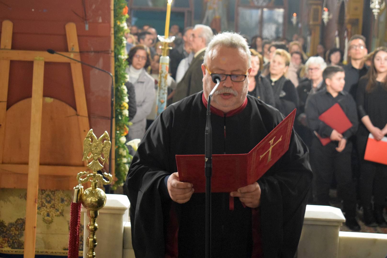 Τον κανόνα έψαλε η 65-μελής χορωδία του Μουσικού Σχολείου Ιλίου, υπό την χοράρχη κα Μύριαμ Μαρίνου. Τα λοιπά μέλη της ακολουθίας απέδωσαν οι ιεροψάλτες του Ι.Ν. Αγ. Βαρβάρας Ιλίου κ.κ. Ιορδάνης Μαντζούρης και Νικόλαος Πετρίδης.