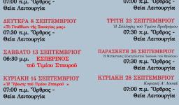 Πρόγραμμα ακολουθιών Σεπτεμβρίου 2025 ενορίας Αγ. Κων/νου Κ. Αχαρνών