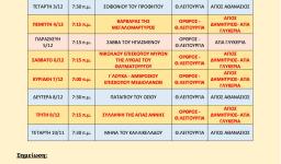 Την Δευτέρα 1.12.2025 θα τελεστεί στον Ιερό Ναό της Ζωοδόχου Πηγής Ιλίου βραδινή Θεία Λειτουργία επί τη μνήμη του Αγίου προφήτου Αββακούμ, της Αγίας μάρτυρος Μυρόπης της εν Χίω και του Οσίου Πορφυρίου