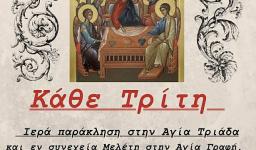 Στον Ιερό Ναό Αγίας Τριάδας Πετρουπόλεως θα τελείται Ιερά Παράκληση στην Αγία Τριάδα και κατόπιν θα γίνεται μελέτη της Αγίας Γραφής, κάθε Τρίτη στις 17:00.