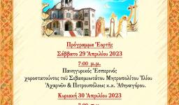 Πανηγυρίζει το ιερό, μητροπολιτικό παρεκκλήσιο των Αγίων Θεοδώρων, το οποίο βρίσκεται εντός του κοιμητηρίου του Δήμου Ιλίου. Το πρόγραμμα των ακολουθιών είναι το ακόλουθο: