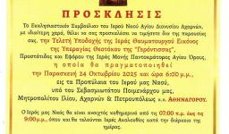 Την ευκαιρία να προσκυνήσουν ένα από τα σεπτότερα κειμήλια του Ορθόδοξου κόσμου είχαν οι πιστοί των Αχαρνών, καθώς ο ιερός ναός του Αγίου Διονυσίου υποδέχθηκε το απόγευμα της Παρασκευής, την Ιερά Θαυματουργό Εικόνα της Παναγίας της «Γερόντισσας» από την Ιερά Μονή Παντοκράτορος Αγίου Όρους, η οποία θα παραμείνει για προσκύνηση έως τη Δευτέρα 3 Νοεμβρίου 2025.