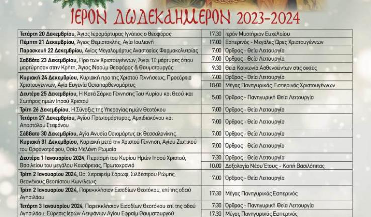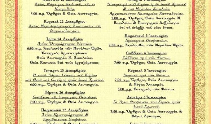 Πρόγραμμα ακολουθιών Β' δεκαημέρου Δεκεμβρίου 2025 ενορίας Αγ. Δημητρίου Πετρ.