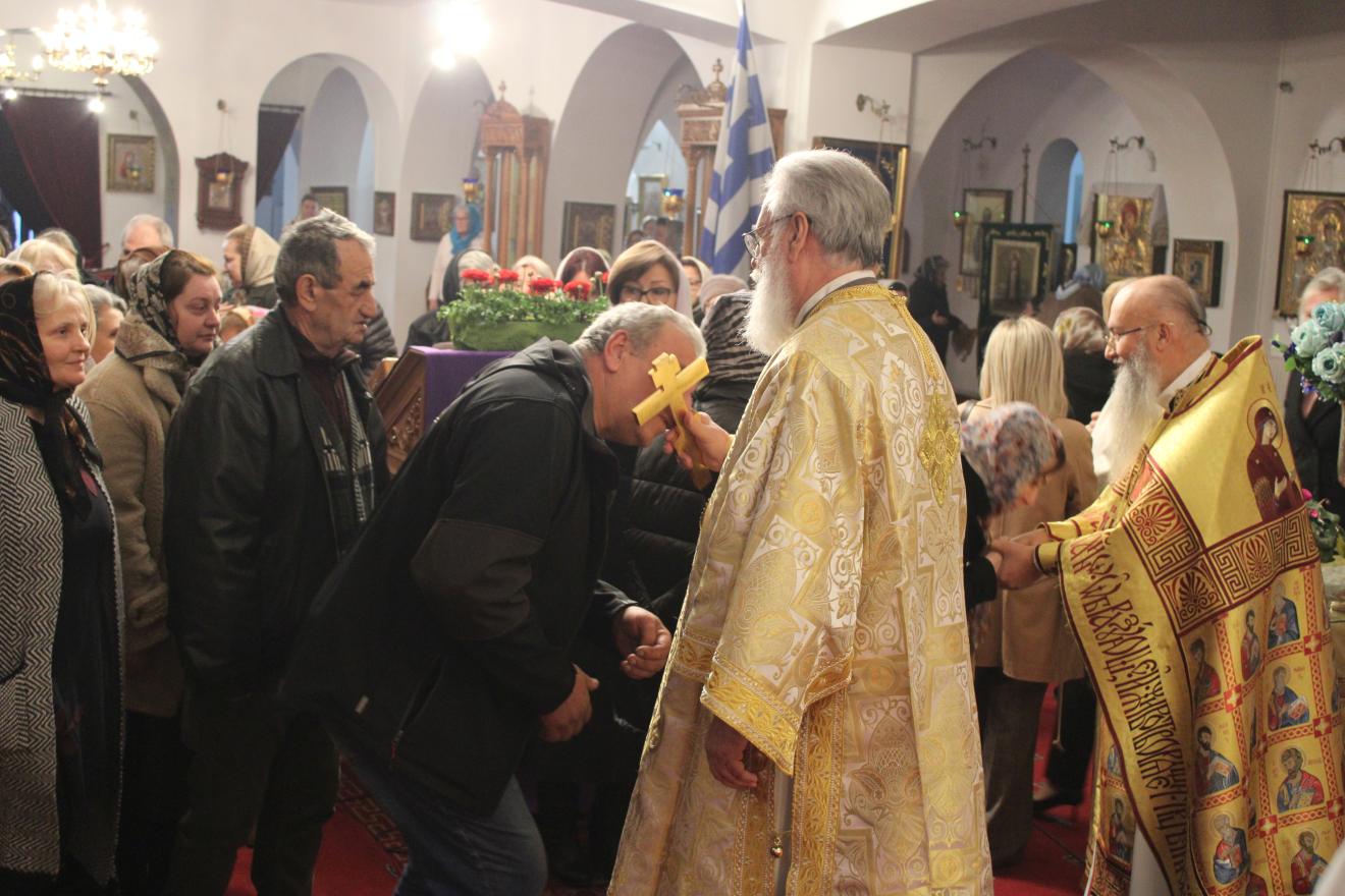 Στο τέλος της Ακολουθίας ο Σεβασμιώτατος μίλησε για την σημασία της εορτής και ευχήθηκε σε όλους τους παρισταμένους πιστούς καλή δύναμη για την περίοδο της Μεγάλης Τεσσαρακοστής, ενώ αυτοί προσκυνούσαν τον τίμιο σταυρό που κρατούσε στο χέρι του.