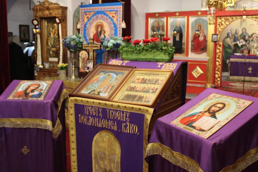 Πριν την απόλυση της Θείας Λειτουργίας τελέσθηκε η Ακολουθία της Αναστηλώσεως των Εικόνων με μικρή λιτανευτική πομπή εντός του ιερού ναού και την ανάγνωση του Συνοδικού της εορτής.