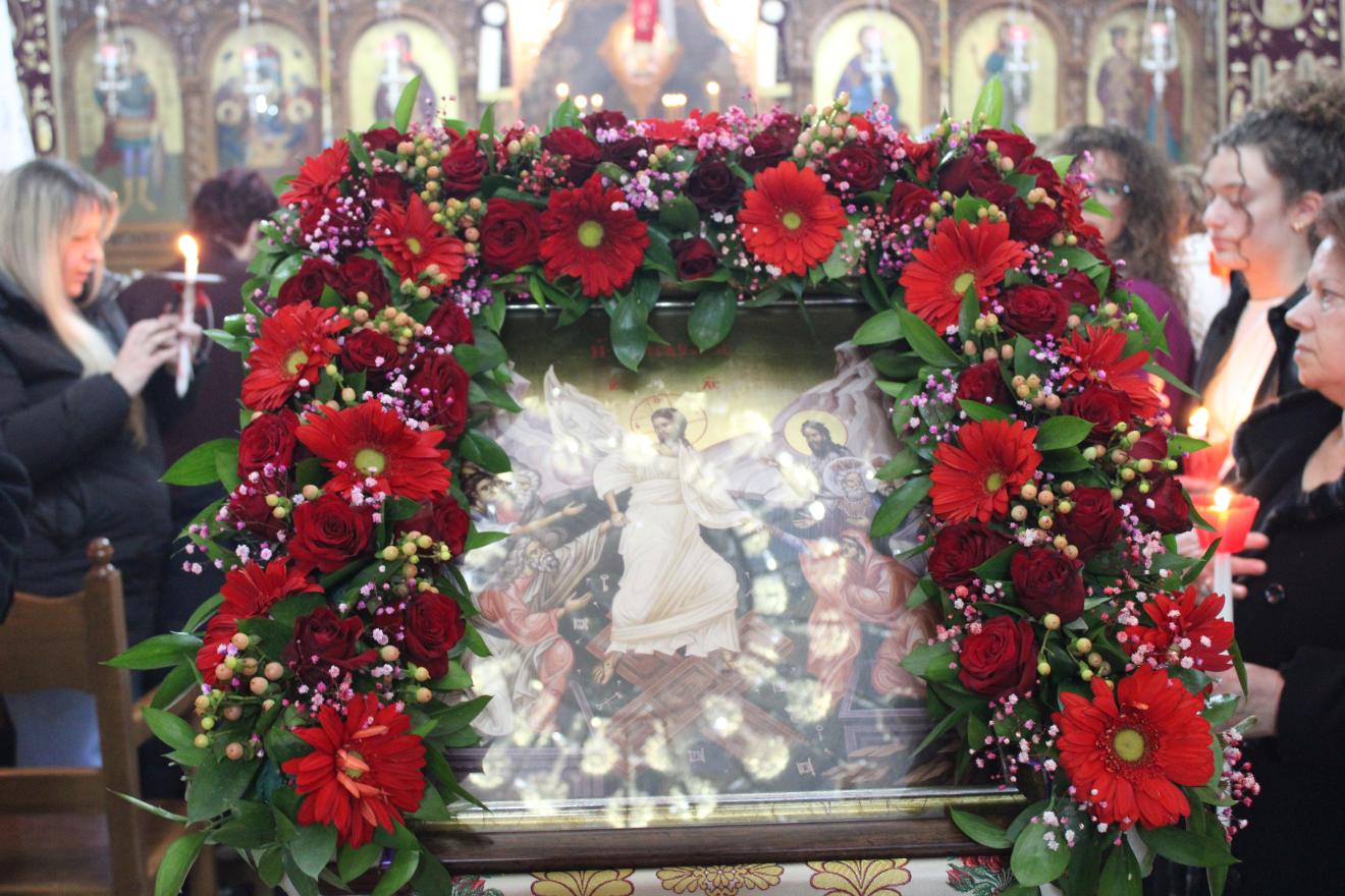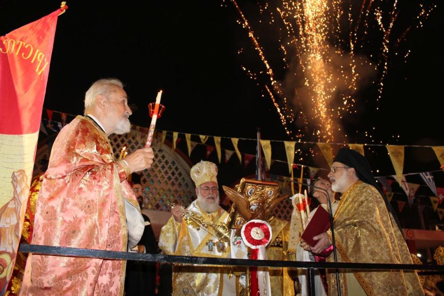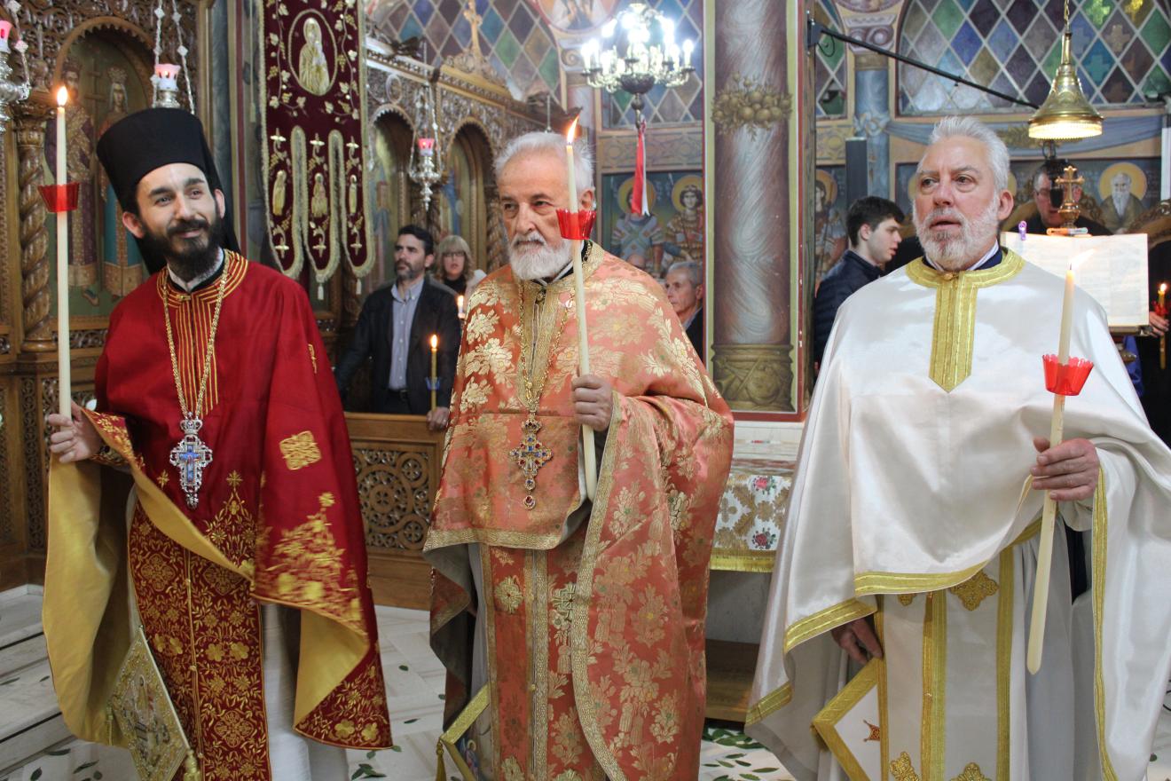 Μετά την απόλυση ο Σεβ. με τους ιερείς μοίρασαν αντίδωρο και πασχαλινά αυγά στους πιστούς, οι οποίοι είχαν κατακλύσει τον Ιερό Ναό ευχόμενοι το «Χριστός Ανέστη» και χρόνια πολλα