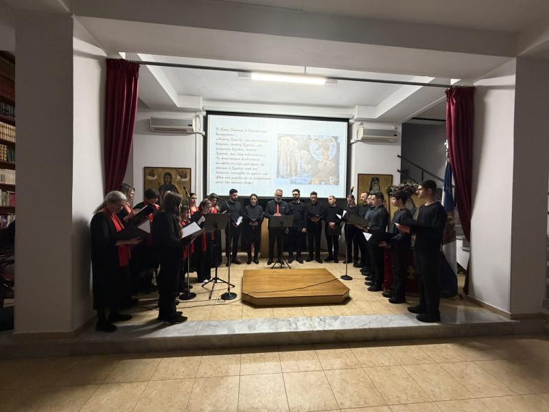 Η λαμπρά αυτή βιβλιοπαρουσίαση έκλεισε με μουσικό πρόγραμμα της Μικτής Βυζαντινής Χορωδίας «Ηδύπνοον Μέλος», την οποία διηύθυνε ο κ. Αθανάσιος Ιωαννίδης, μουσικοδιδάσκαλος.