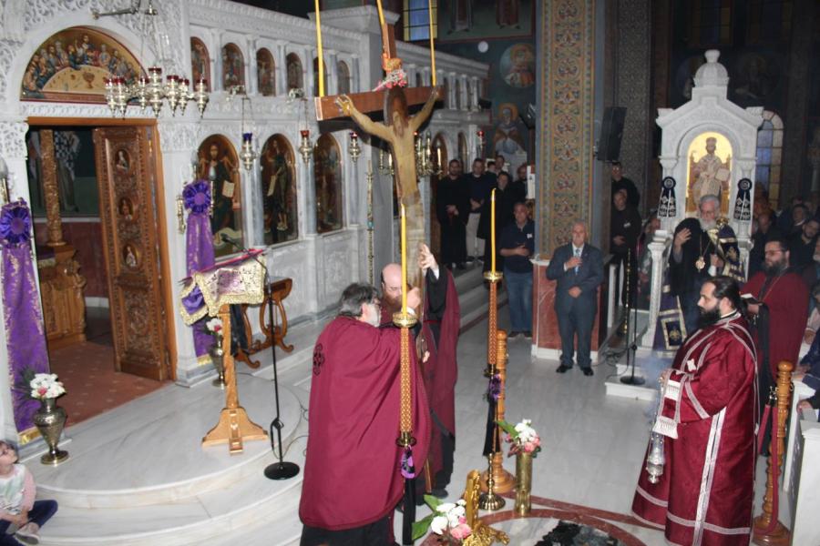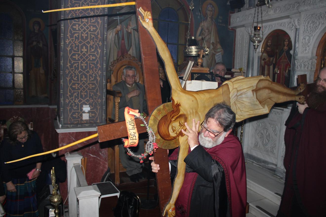 Μετά την έξοδο του Εσταυρωμένου και αρκετή ώρα μετά την απόλυση πλήθος ενοριτών προσκυνούσαν με ευλάβεια τον Τίμιο Σταυρό.