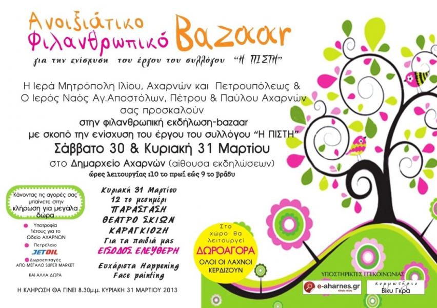 Ανοιξιάτικο φιλανθρωπικό bazaar διοργανώνει η Μητρόπολη Ιλίου με τον Ι.Ν. Αγίων Αποστόλων Πέτρου και Παύλου Αχαρνών.