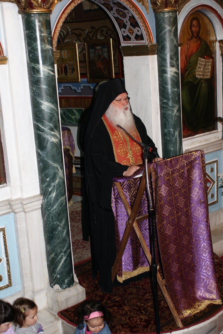 Τον Πανοσιολογιότατο και τη συνοδεία του καλωσόρισε ο Προϊστάμενος του Ιερού Ναού π. Χαράλαμπος Τριαντόπουλος, ο οποίος τους απηύθυνε εγκάρδιο χαιρετισμό και τους ευχαρίστησε για την παρουσία τους στην ενορία μας.
