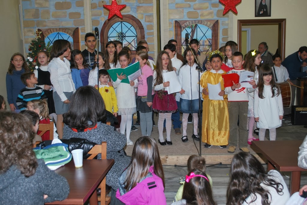 Την Κυριακή 22 Δεκεμβρίου 2013 πραγματοποιήθηκε η χριστουγεννιάτικη γιορτή των κατηχητικών συναντήσεων της ενορίας μας. Από νωρίς το απόγευμα μαζεύονταν τα παιδιά ώστε να κάνουν τις τελευταίες πρόβες, και μαζί μ’ αυτά και οι γονείς τους γέμιζαν σιγά-σιγά την αίθουσα εκδηλώσεων του πνευματικού κέντρου του ναού μας. Λίγο μετά τις 7 η γιορτή ξεκίνησε με το απολυτίκιο των Χριστουγέννων. Σύντομους χαιρετισμούς και ευχαριστίες απεύθυναν ο π. Εμμανουήλ Σέρβος, προϊστάμενος του ναού και ο π. Ευάγγελος Ζαχαρίας, υπεύθυνος για τη νεότητα. Το κυρίως πρόγραμμα περιλάμβανε τραγούδια, ύμνους, κάλαντα, ποιήματα, αναγνώσματα, σκετσάκια και θεατρικό έργο με τίτλο «Παραμονή Χριστουγέννων». Η γιορτή έκλεισε με το κοντάκιο των Χριστουγέννων, μοιράστηκαν δώρα στα παιδιά και κεράσματα σε όλους, μικρούς και μεγάλους.