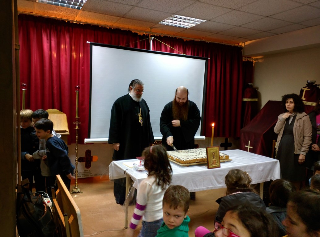 Τα παιδιά έκοψαν την πίτα, πήραν όλα δώρα και είδαν εκπαιδευτική ταινία. Στην κοπή παρευρέθηκε και ευχήθηκε ο Σεβασμιώτατος Μητροπολίτης Ηλιουπόλεως Αιγύπτου κ. Θεόδωρος.