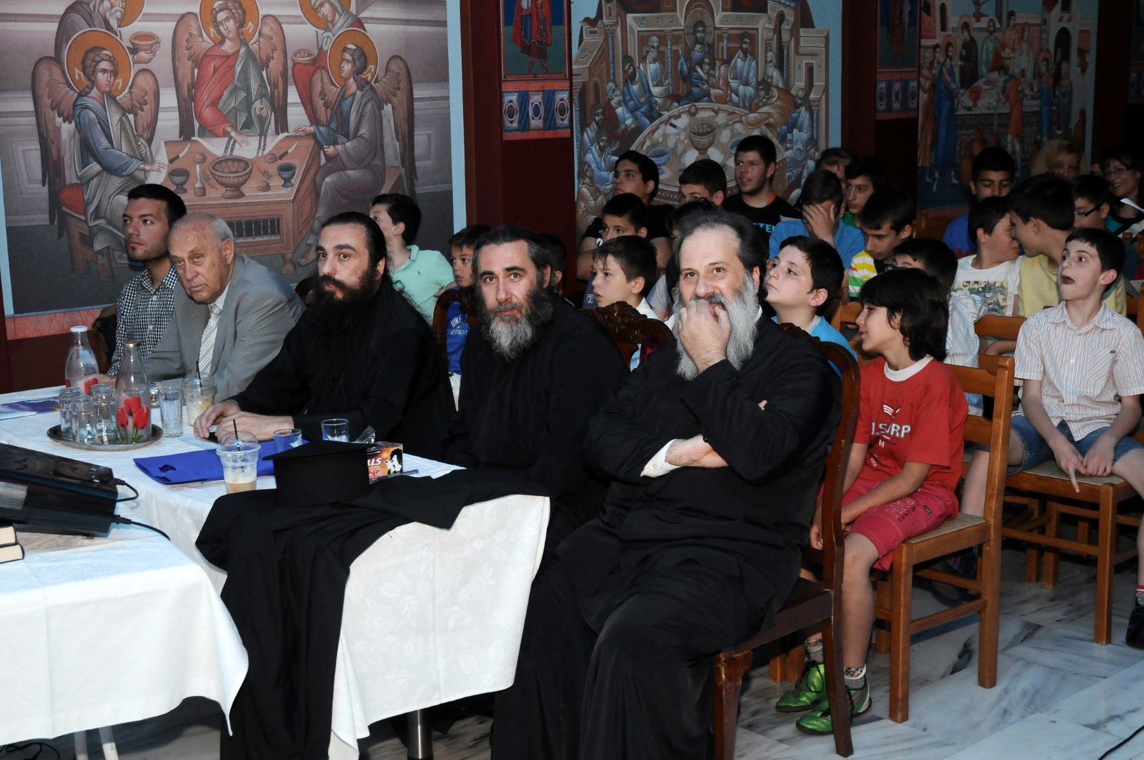 Την εκδήλωση παρακολούθησαν ο Υπεύθυνος του Γραφείου Νεότητας της Μητροπόλεως Αρχιμ. Ιωαννίκιος Γιαννόπουλος και οι Ιερείς π. Αντώνιος Μπαφαλούκος και π. Κυριακός Μυκονιάτης, μαζί με τους ιερείς του ναού, τους γονείς και τους επισκέπτες των παιδιών των κατηχητικών συνάξεων.