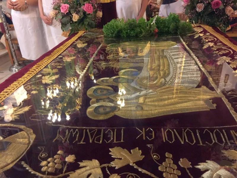 Το ιεροσολυμίτικο τυπικό των Εγκωμίων της Θεοτόκου τελέστηκε στον πανηγυρίζοντα Ιερό Ναό Κοιμήσεως Θεοτόκου Αχαρνών, το βράδυ της 15ης Αυγούστου 2016.