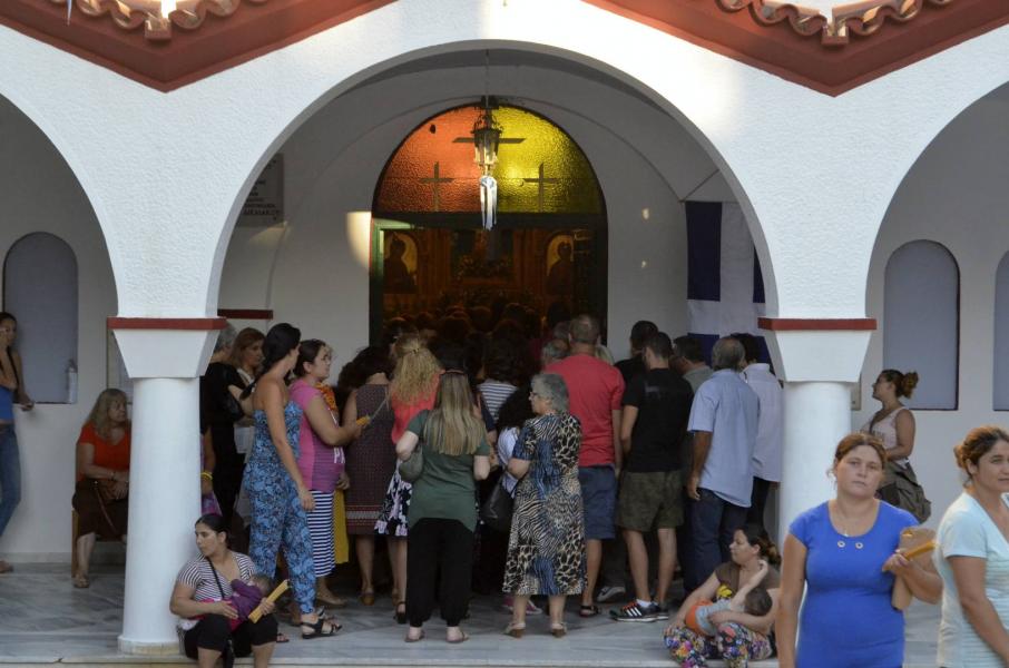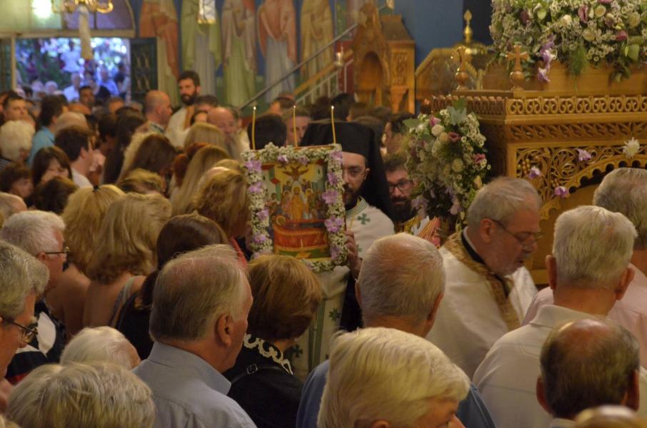 Χαρακτηριστικό του μεγάλου πλήθους των προσκυνητών, ήταν η ουρά που έφτανε έξω από την ναό. Τον θείο λόγο κήρυξε ο κ. Αθηναγόρας ο οποίος αναφέρθηκε στο στίχο «ἡ πηγὴ τῆς ζωῆς, ἐν μνημείῳ τίθεται, καὶ κλῖμαξ πρὸς οὐρανόν, ὁ τάφος γίνεται» αναφερόμενος στο πρόσωπο της υπεραγίας Θεοτόκου που έγινε η σκάλα (κλίμακα) για να κατέβει ο Θεός στην γη, με την σάρκωση του Θεού Λόγου αλλά και αντιστρόφως, γίνεται κλίμακα και με την κοίμησή της, επιστρέφει στον Υιό της.