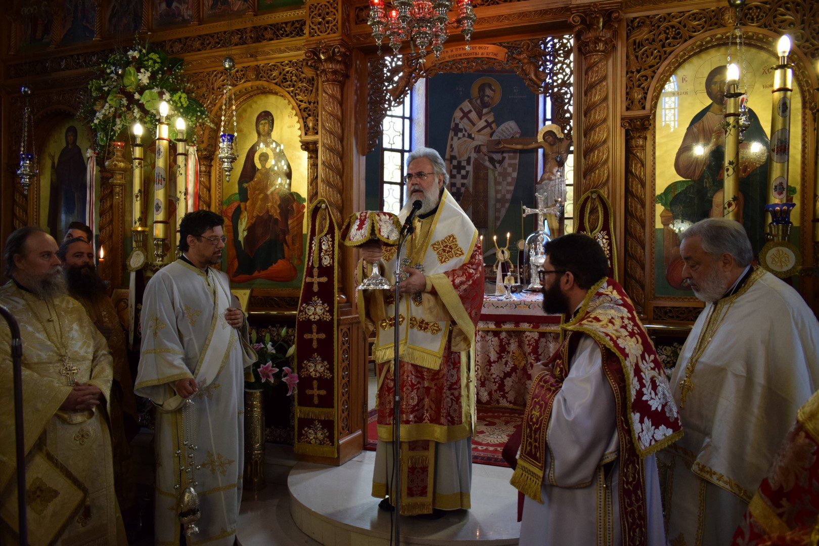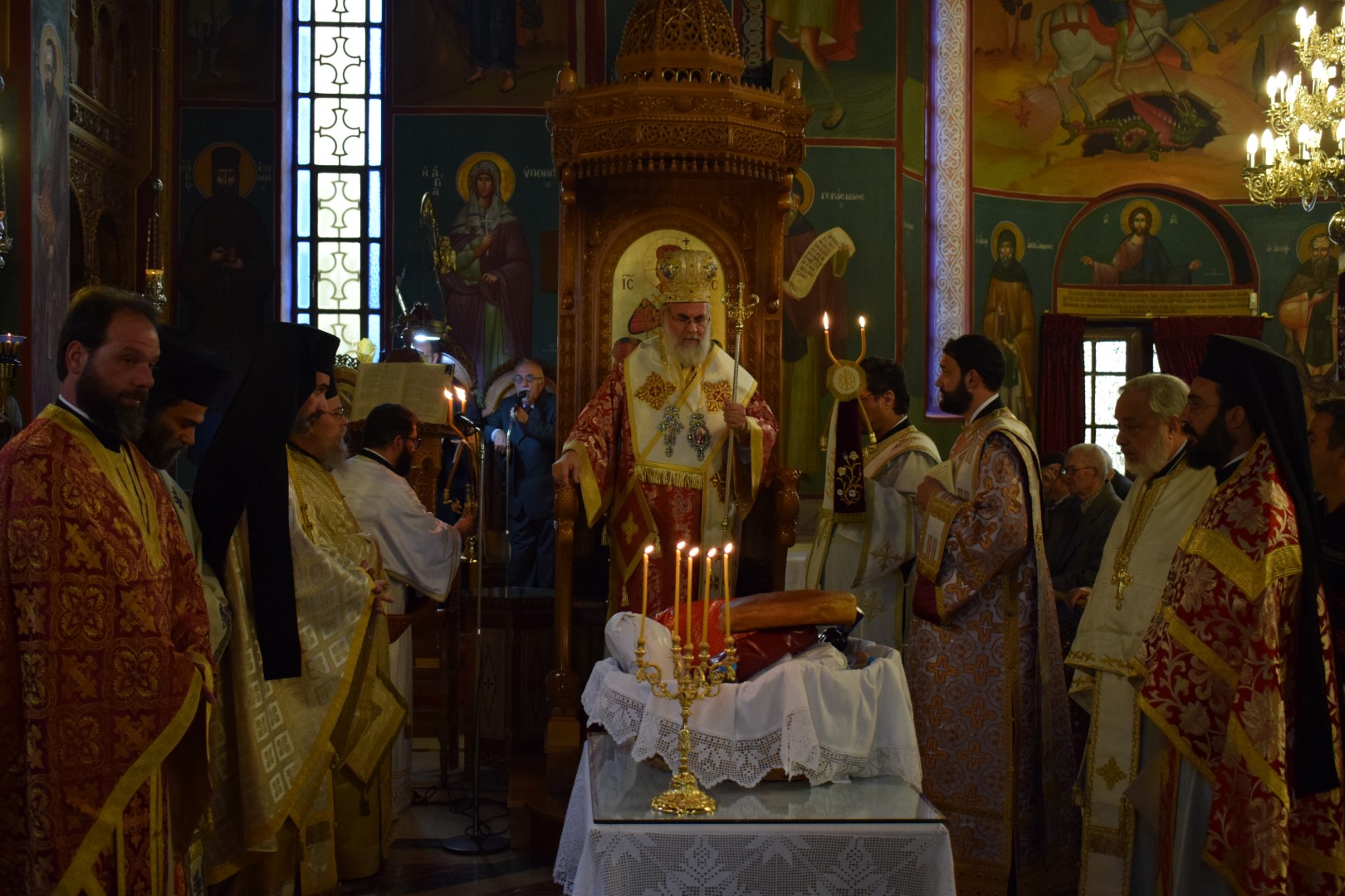 Η Θεία Λειτουργία τελέστηκε με τη συλλειτουργία πολλών ιερέων, παρόντος του Πρωτοσυγκέλλου της Ιεράς Μητροπόλεως Ιλίου Αρχιμ. Γαβριήλ Ασπρολούπου, ο οποίος προΐσταται του Εκκλησιαστικού Συμβουλίου του Ι.Ν. Αγ. Αικατερίνης.