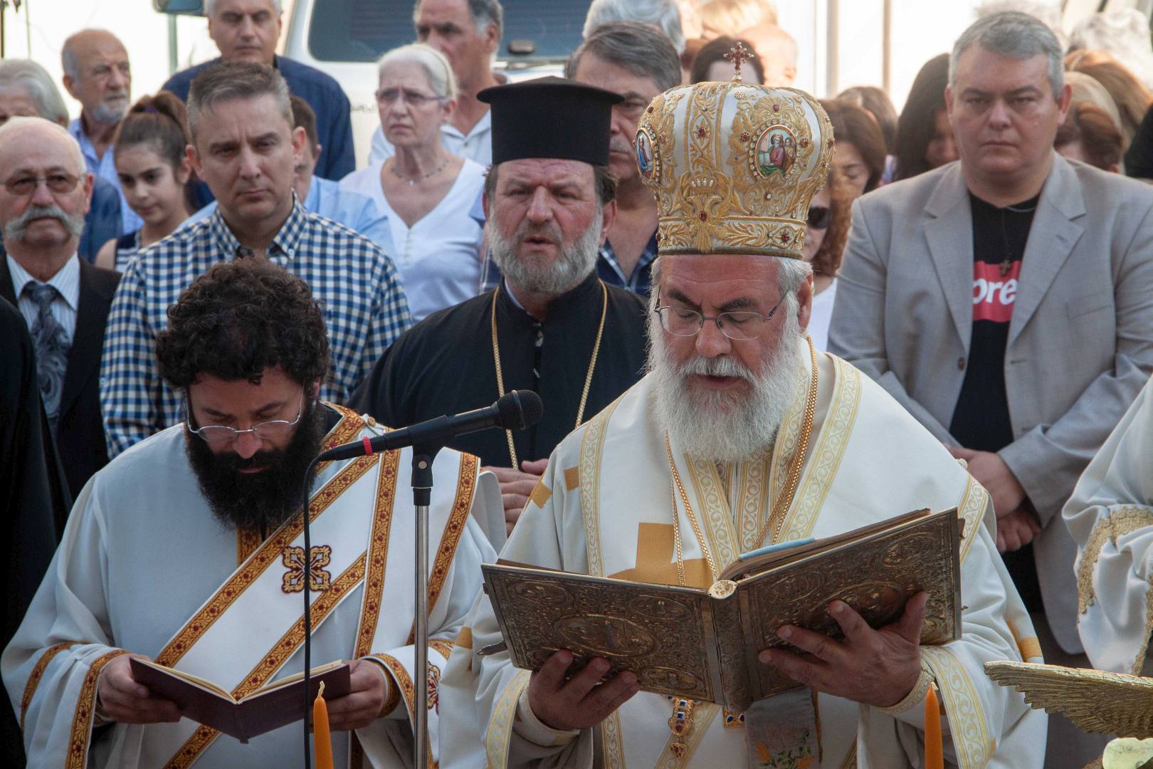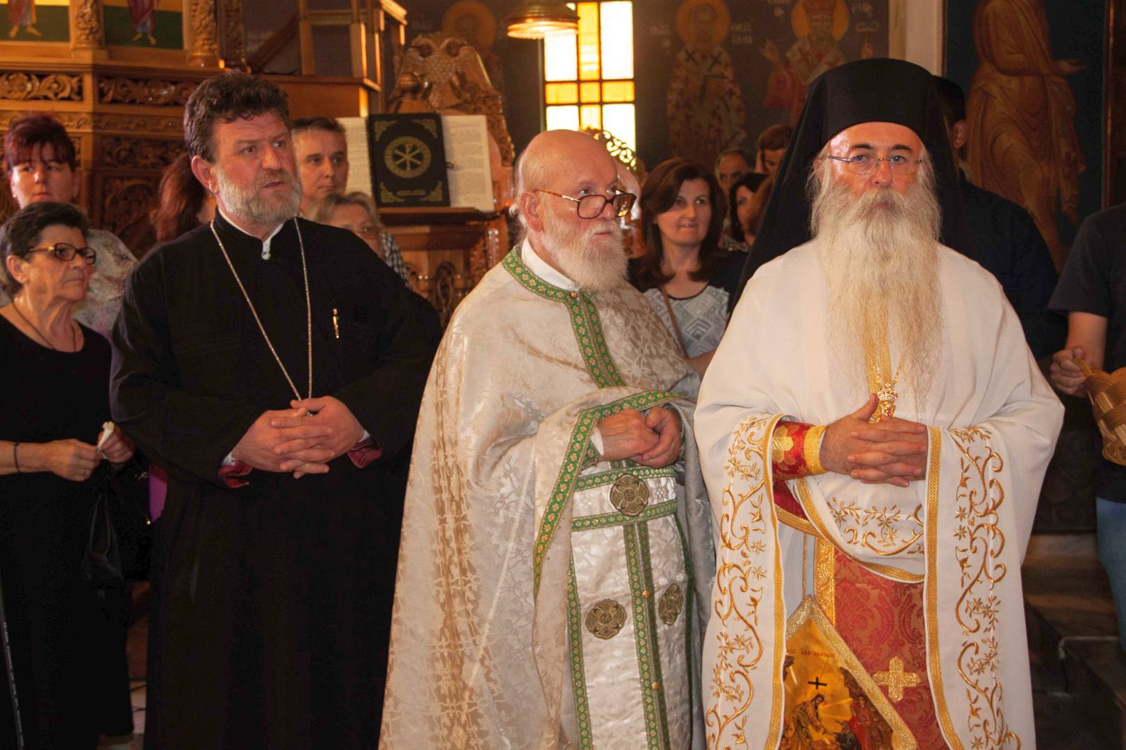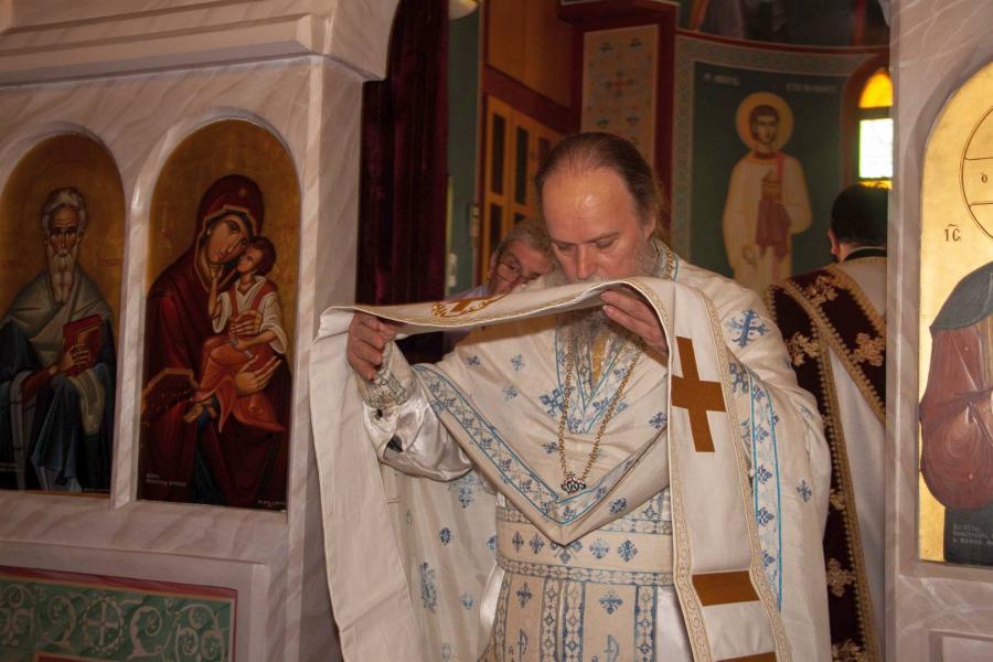 Με το πέρας του τελετουργικού, τελέστηκε και η πρώτη πανηγυρική Θεία Λειτουργία στο εγκαινιασμένο πλέον θυσιαστήριο, προεξάρχοντος του κ. Αθηναγόρα, ο οποίος έκανε σύντομη αναφορά στο περιεχόμενο των σημερινών Ευαγγελίων. Την επιθυμία του Χριστού να μάθει από τους μαθητές του ποιός είναι, την αναγνώριση της μητέρας του από μία γυναίκα και τη σπουδαιότητα της προσωπικότητας, τόσο του ίδιου, όσο και της μητέρας του και τέλος την επιβεβαίωση της ταυτότητάς του προς τους Ιουδαίους.