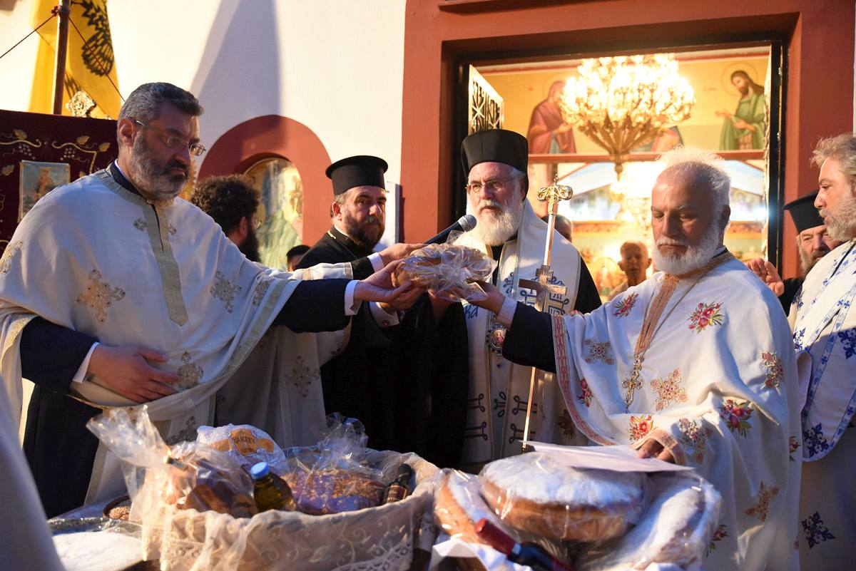 Με την επιστροφή της πομπής, ευλογήθηκαν οι εκατοντάδες φανουρόπιτες που είχαν προσκομίσει οι πιστοί.
