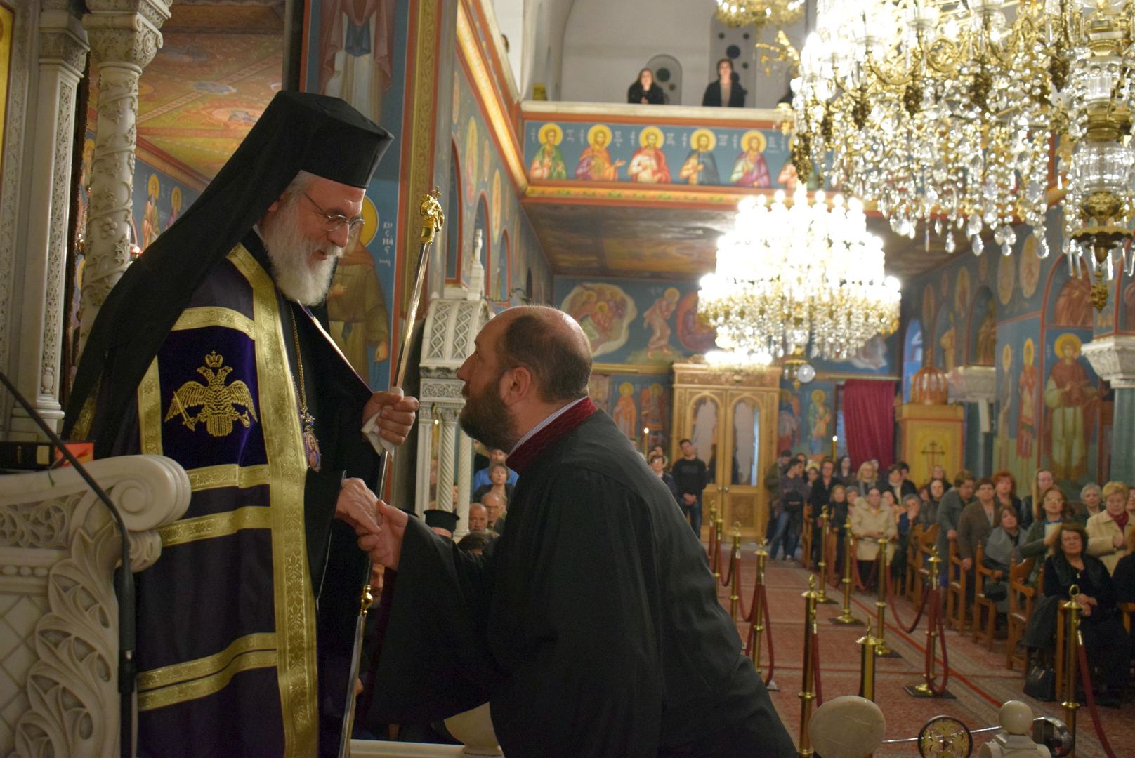 Στο τέλος, αντάλλαξε τον ασπασμό της συγχώρησης με όλους του ιερείς της Μητροπόλεως και τους πιστούς που είχαν προσέλθει από πολλές ενορίες, δίνοντάς τους ως ευλογία ένα κηροπήγιο και ένα μελισσοκέρι, για την προσευχή τους κατά την περίοδο αυτή.