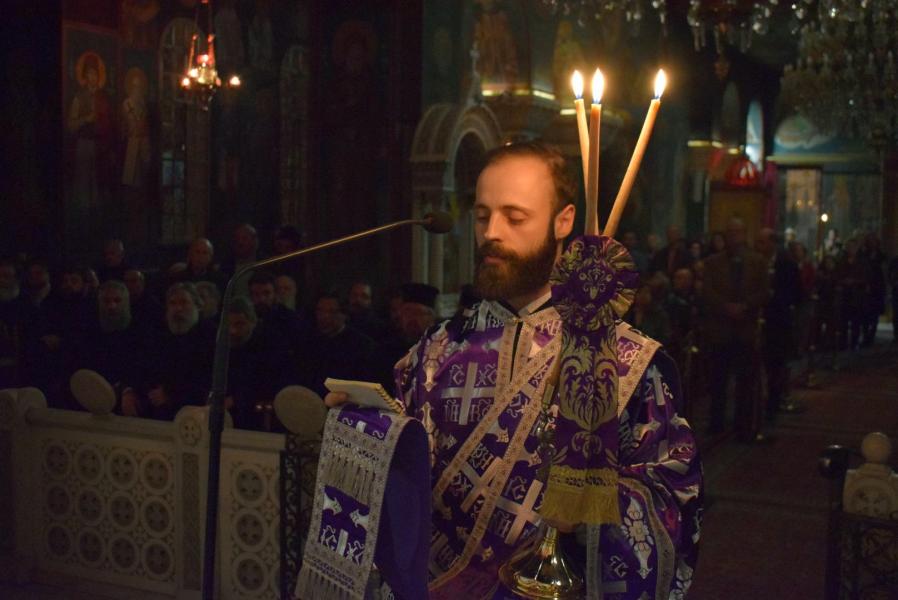 Ο κ. Αθηναγόρας, μέσα στο ιλαρόν φως της επερχόμενης νύχτας, το οποίο συμβολίζει την επερχόμενη «ανέσπερη ημέρα», μίλησε για τη μετοχή των πιστών στη Μεγάλη Τεσσαρακοστή αλλά κυρίως για τη μετοχή των πιστών στη Θεία Ευχαριστία.