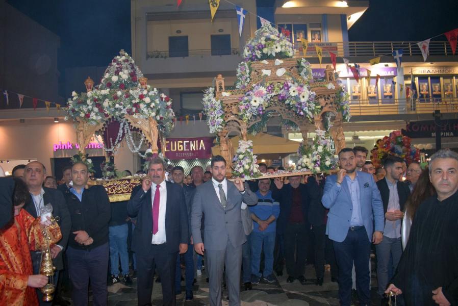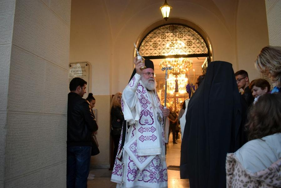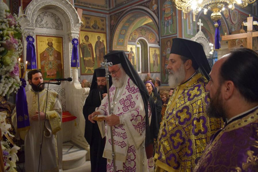 Μαζί με τον πρόεδρο του Εκκλησιαστικού Συμβουλίου, Αρχιμ. Ιωάννη Ράπτη, οι ιεροκήρυκες της Μητροπόλεως Αρχιμ. Αγαθάγγελος Κόκλας και Αρχιμ. Ιωαννίκιος Γιαννόπουλος και οι εφημέριοι του ναού π. Βασίλειος Λεπενίτσας και π. Βασίλειος Πλιάτσικας, μαζί με πλήθος πιστών και επισήμων, έψαλλαν τα Εγκώμια του Επιταφίου.