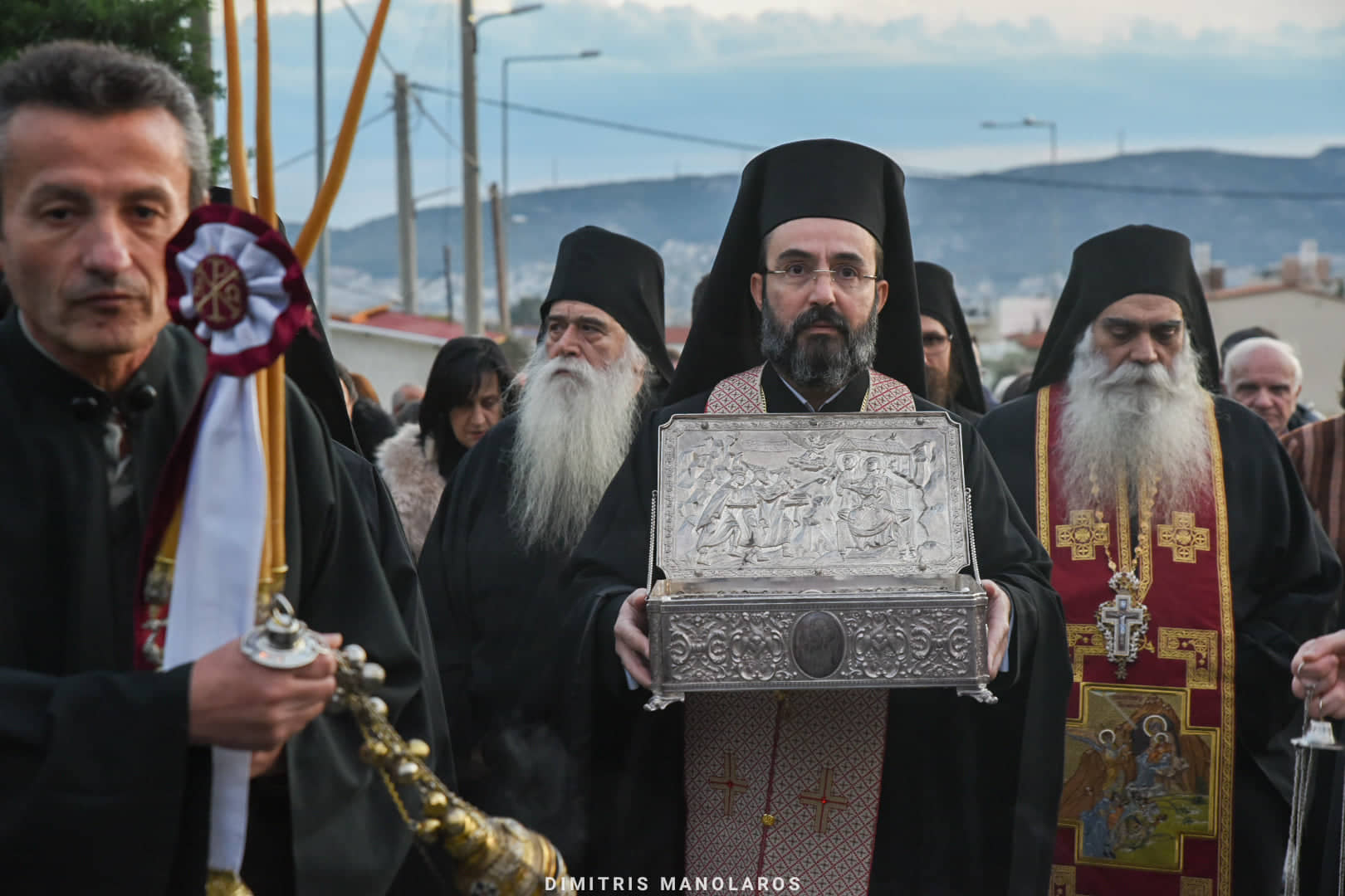 Στην υποδοχή και τον Αρχιερατικό εσπερινό προέστη ο Σεβασμιώτατος Μητροπολίτης Ιλίου κ. Αθηναγόρας, πλαισιωμένος από τον Πρωτοσύγκελλο της Μητροπόλεως, Αρχιμ. Νικόδημο Αθανασίου, τον εφημέριο του ναού Αρχιμ. Μηνά Αλεξιάδη, ιερείς από την Ι. Μονή Αγίου Παύλου Αγίου Όρους που συνόδευαν τα ιερά σεβάσματα και ιερείς της Μητροπόλεως Ιλίου.
