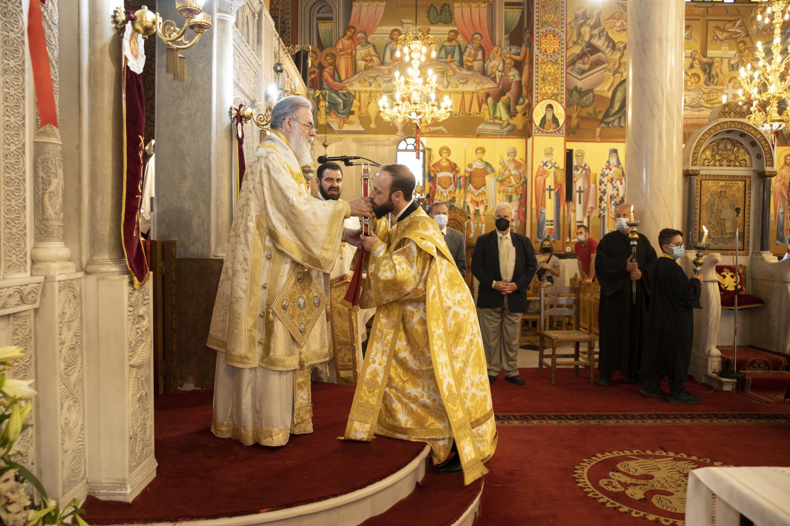 Στην ομιλία του ο Σεβασμιώτατος αντιπαρέβαλε το ρωμαλέο φρόνιμα που έδειξε ο Χριστός, ξεκινώντας από το τροπάριο «Ῥωμαλαιότητι τοῦ κρείττονος, ἐκνικήσαντός σου, τῆς σαρκὸς ἡ ψυχή σου, διῄ ῥηται σπαράττουσα· ἄμφω γὰρ δεσμούς, τοῦ θανάτου καὶ ᾍδου, Λόγε τῷ κράτει σου», με το ρωμαλέο φρόνιμα του Αγίου Γεωργίου.