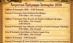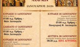 Πρόγραμμα ακολουθιών Ιανουαρίου 2026 ενορίας Προφ. Ηλιού Πετρ.