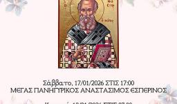 Την Τετάρτη 14.01.2026 θα τελεστεί στον Ιερό Ναό της Ζωοδόχου Πηγής Ιλίου βραδινή Θεία Λειτουργία επί τη μνήμη των Οσίων Παύλου του Θηβαίου και Ιωάννου του Καλυβίτου.