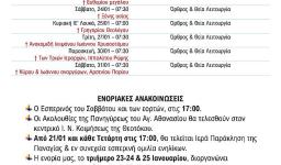 Πρόγραμμα ακολουθιών Ιανουαρίου 2026 ενορίας Κοιμήσεως Θεοτόκου Αχαρνών