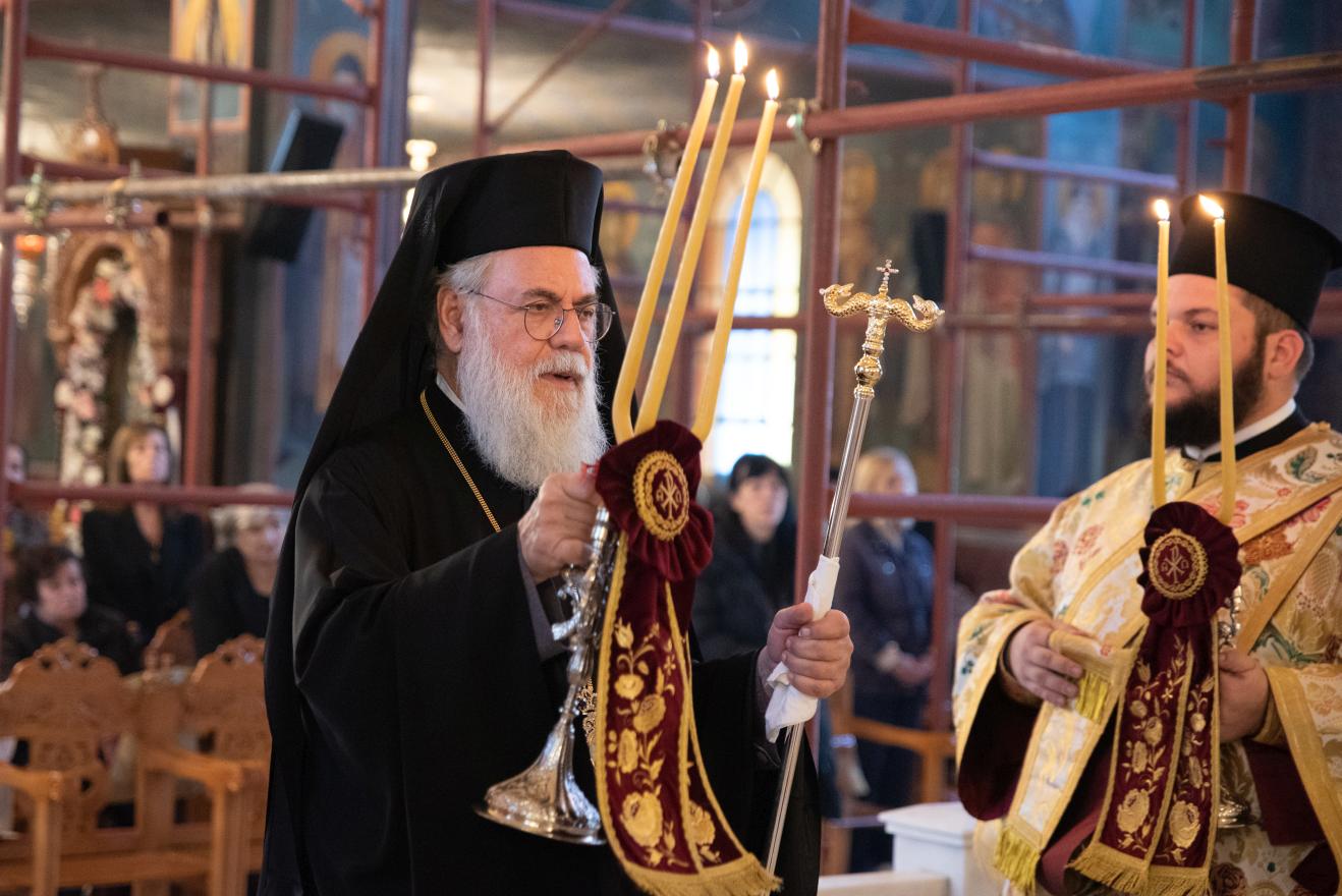 Ο Σεβασμιώτατος αναφέρθηκε στη σημερινή εορτή λέγοντας μεταξύ άλλων ότι “Η Αγία Βαρβάρα δεν αγωνίστηκε για τον εαυτό της, δεν αγωνίστηκε για να γίνει ένας καλύτερος άνθρωπος, δεν αγωνίστηκε για να απελευθερωθεί από τις αμαρτίες της. Αγωνίστηκε για να απελευθερωθεί από όλα εκείνα Την κρατούσαν δέσμια και δεν Την άφηναν να αγωνιστεί με τον Χριστό. Δεν την άφηναν ελεύθερη να εκφραστεί μπροστά στον Χριστό, να εκφράσει την αγωνία, την αμφιβολία, τον πόνο. Έτσι, όλοι μας παύουμε να αγωνιζόμαστε για τον εαυτό μας και μπαίνει μπροστά ο Χριστός, Αυτός που αγωνίστηκε πριν από εμάς για εμάς. Προσέφερε τον εαυτό του για την δική μας λύτρωση και σωτηρία. Για τον πόνο, την αγάπη, την αμφιβολία, για την άρνηση. Και τα δέχθηκε όλα.”