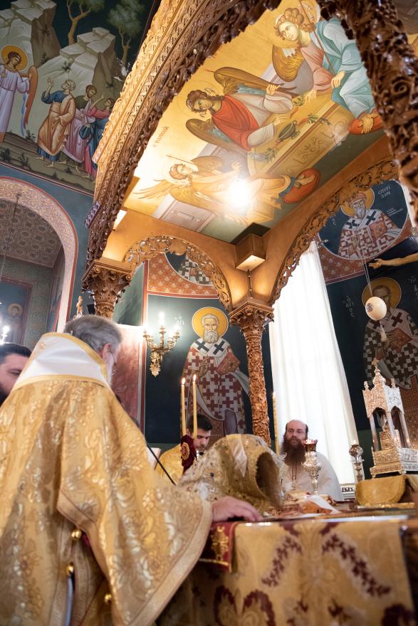 Στην πανηγυρική Θεία Λειτουργία προεξήρχε ο Σεβασμιώτατος Μητροπολίτης Ιλίου, Αχαρνών και Πετρουπόλεως κ. Αθηναγόρας, συμπαραστατούμενος από τους εφημέριους του Ναού και πλειάδα ιερέων της Μητρόπολης Ιλίου.