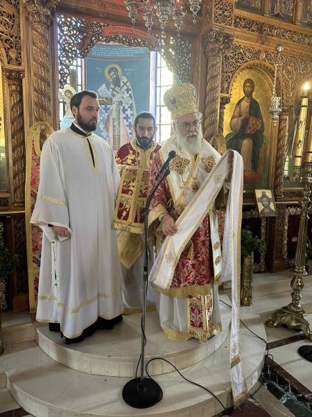 Στη σύντομη και μεστή περιεχόμενου προσφώνηση του υποψηφίου Διακόνου, ο Σεβασμιώτατος αντιφώνησε ερμηνεύοντας το χωρίο από το βιβλίο της Εξόδου:«Καὶ ἐκάλυψεν ἡ νεφέλη τὴν σκηνὴν τοῦ μαρτυρίου, καὶ δόξης Κυρίου ἐπλήσθη ἡ σκηνή· καὶ οὐκ ἠδυνάσθη Μωυσῆς εἰσελθεῖν εἰς τὴν σκηνὴν τοῦ μαρτυρίου, ὅτι ἐπεσκίαζεν ἐπ᾿ αὐτὴν ἡ νεφέλη καὶ δόξης Κυρίου ἐνεπλήσθη ἡ σκηνή». Εκτός από την εξεικόνιση του θαύματος της σαρκώσεως του Υιού και Λόγου του Θεού από την Παναγία Μητέρα μας, που τον κρατεί στα σπλάχνα της, όπως η Κιβωτός τις πλάκες της Διαθήκης, η Νεφέλη που επισκιάζει την Κιβωτό αναφέρεται στο αδύνατο της προσέγγισης του Θεού από τον άνθρωπο μετά την πτώση του και την απομάκρυνσή του από τον Παράδεισο. Η Νεφέλη αίρεται με την Σάρκωση του Χριστού ο οποίος λυτρώνει τον λαό του Θεού με τη σταυρική θυσία και την Ανάσταση του, ενώ οι Απόστολοι και μετ’ αυτούς οι επίσκοποι και δια της ευλογίας αυτών οι ιερείς, οδηγούν τον λαό του Θεού διαμέσου των οχληρών τούτου εδώ του κόσμου στο χώρο της Βασιλείας του Θεού, σωζόμενοι και σώζοντες δια της Χάριτος του Θεού.