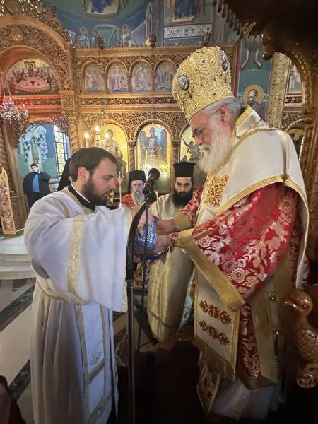 Προέβη στο τέλος του Όρθρου στην «εις Υποδιάκονον» χειροθεσία του μοναχού Νεκτάριου (Χρήστου) Τριβέλα, από τις Αχαρνές, και μετά τον καθαγιασμό στην χειροτονία του «εις Διάκονον».