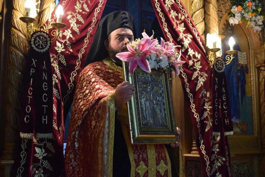 Μετά τον Εσπερινό πραγματοποιήθηκε λιτάνευση της Ιεράς Εικόνος, παρουσία της Δημοτικής Αρχής της πόλης των Αχαρνών.