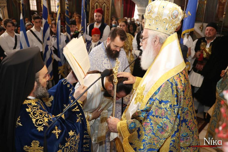 Μέτα το πέρας της Θείας Λειτουργίας ο Σεβασμιώτατος χειροθέτησε σε Αρχιδιάκονο τον π. Νικόδημο μετά από μικρή αναφορά στο γεγονός του Ευαγγελισμού, αλλά και στον χειροτονήσαντα τον διάκονο μακαριστό Μητροπολίτη Περιστερίου κυρό Κλήμη, με τον οποίον ο Σεβασμιώτατος υπήρξε συμμοναστής στην Ιερά Μονή Σάγματα στο Ύπατο Θηβών. Εμνήσθη της αγάπης του μακαριστού Μητροπολίτη προς την Παναγία μας και προς τον χειροθετηθέντα Αρχιδιάκονο, ο οποίος στάθηκε μέχρι την τελευταία πνοή στον Επίσκοπο του.