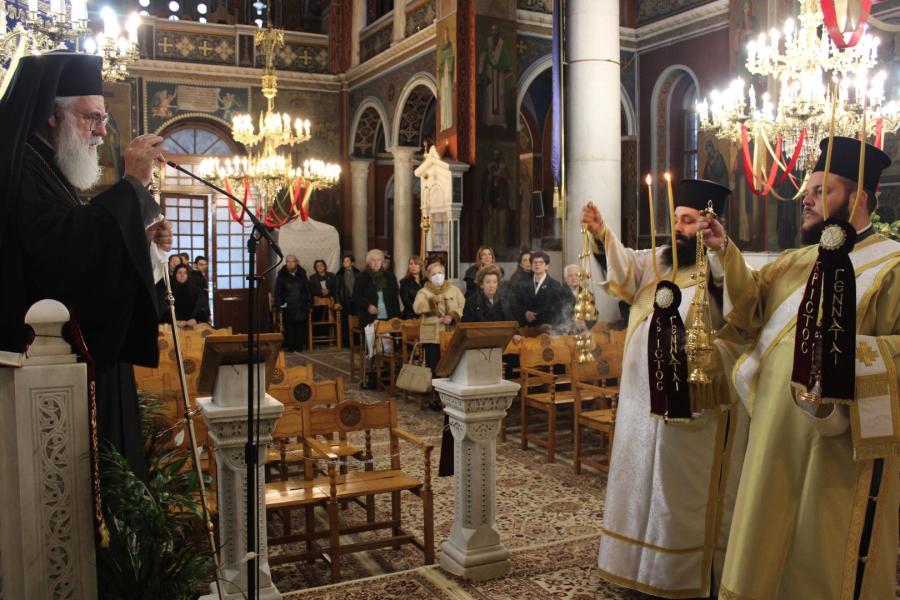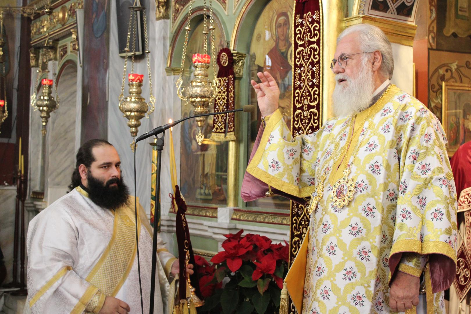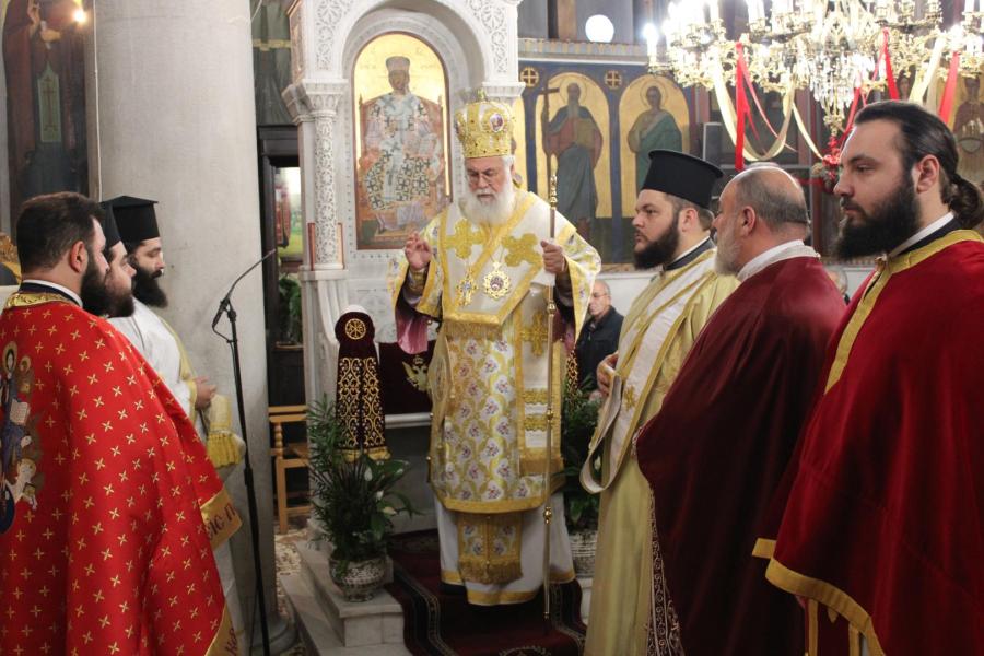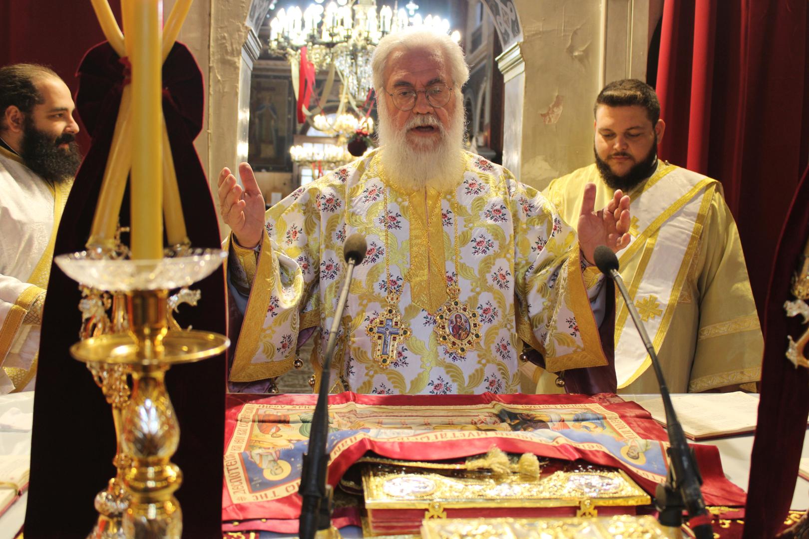 Μετά την ανάγνωση του αποσπάσματος από το Ευαγγέλιο του Αποστόλου Ματθαίου, όπου παρατίθεται ένας κατάλογος των προγόνων κατ’ άνθρωπον του Χριστού, από τον Αδάμ μέχρι του μνήστορος της Παναγίας μας Ιωσήφ, ο Σεβασμιώτατος μίλησε για την αγωνιώδη αναζήτηση ταυτότητας από τους ανθρώπους με την προσπάθειά τους να προσκολληθούν σε κάποιον ισχυρό αυτής της κοινωνίας για να νιώσουν ασφαλείς και δυνατοί και αναφέρθηκε στην πραγματική μας ταυτότητα που πηγάζει από τη γέννηση του Χριστού και την ενσωμάτωσή μας στην Εκκλησία Του με το Βάπτισμα και τη μετοχή μας στα Μυστήριά Της.