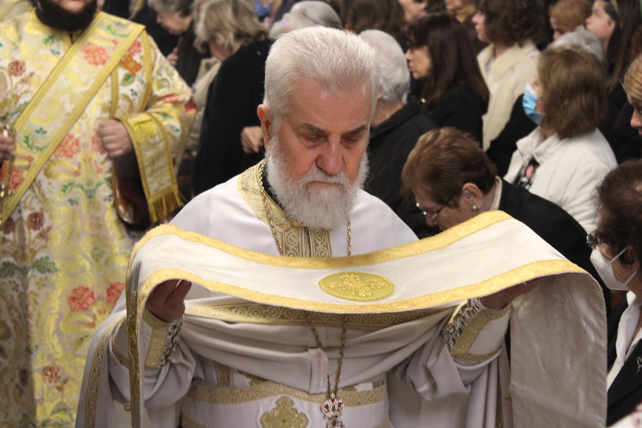 Μετά την απόλυση ο Σεβασμιώτατος διένειμε αντίδωρο στους πιστούς που είχαν κατακλύσει τον Ιερό Ναό ευχόμενος Καλή Ανάσταση και χρόνια πολλα